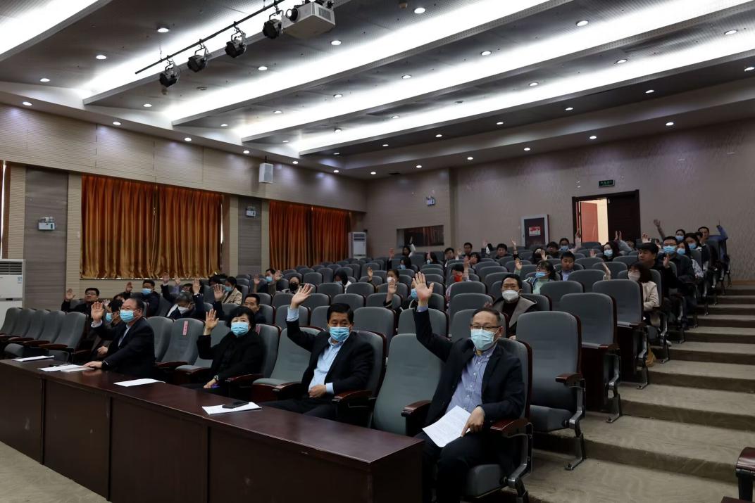 会议中,李金山副院长介绍了《转设论证报告》的情况,并提请与会代表进行审议。随后,支玉成副主席就此次会议的表决规则进行了详细说明,与会代表对表决规则现场举手表决通过。教代会执委会提出了监票人、计票人预备人选的建议,并经与会代表现场举手表决通过。