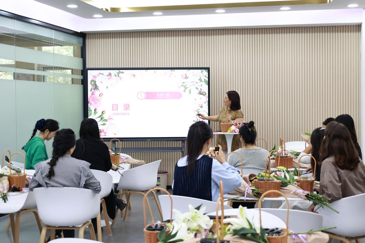 活动特邀专业花艺讲师进行现场指导。讲师从花材选择、色彩搭配、造型技巧等方面深入浅出地进行了讲解,巧妙地将插花艺术的美学理念与育人匠心融合,引导老师们通过修剪枝叶、构思布局感悟教育的智慧与艺术。