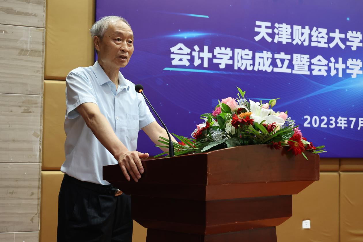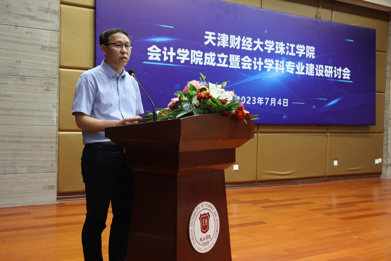 成立大会结束后,会计学院举办了会计学科专业建设研讨会。天津天士力大健康产业投资集团副总经理、天津市会计学会副会长裴富才,BEAT365英国官网会计学院院长韦琳教授分别做了主旨演讲。裴富才副会长认为财务职业成功未来可期,并指出了一条职业成功之路,给出了助力职业发展的三种观念、三种能力和三种知识。