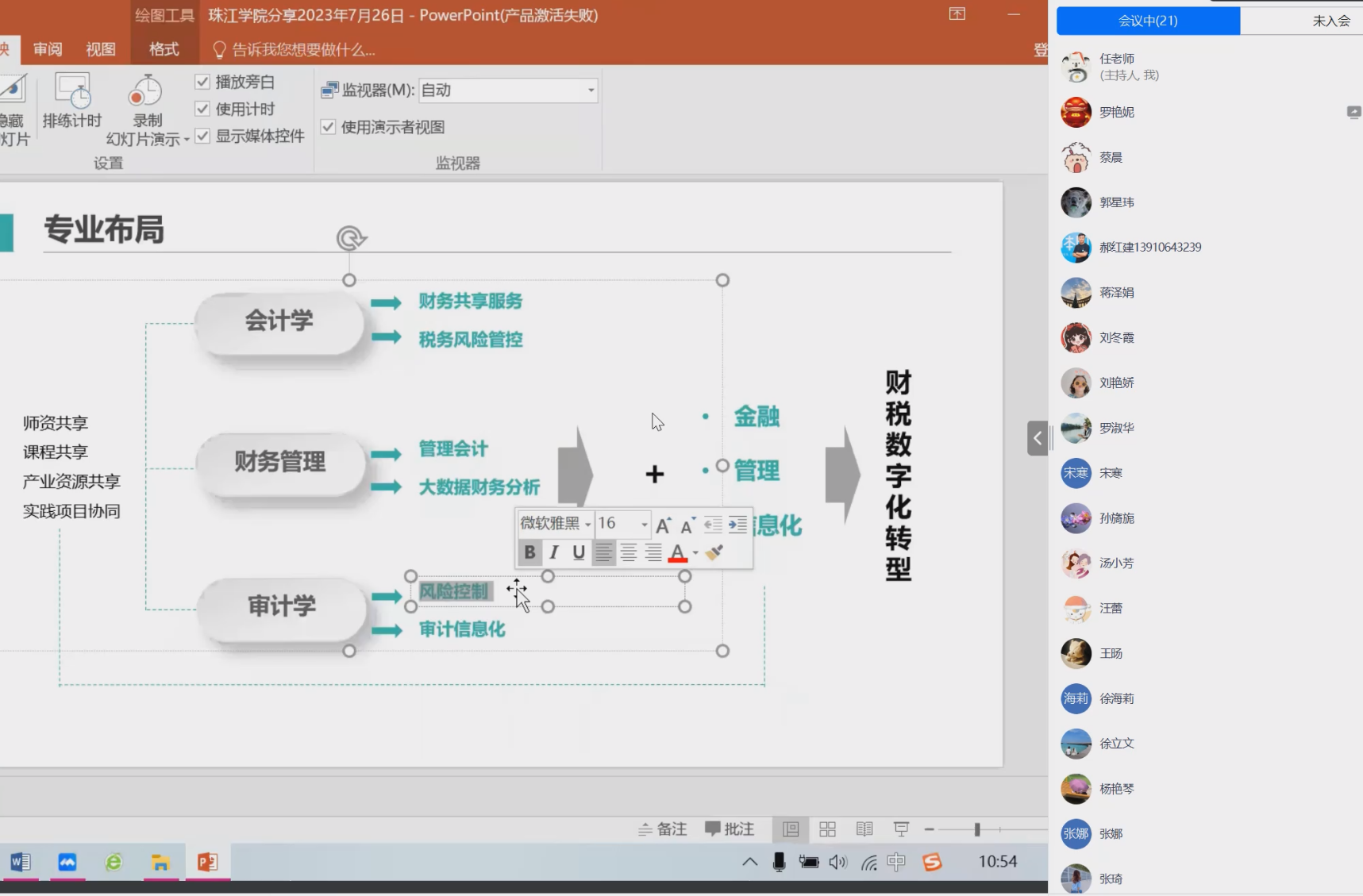 近日,会计学院联合浪潮铸远科技、金蝶精一科技、用友新道科技三家知名的教育软件企业以线上形式举办“大数据+专业赋能”师资训练营。BEAT365英国官网会计学院副院长徐立文、会计学系副主任冯怡、财务管理系副主任汪蕾、审计学系副主任汤小芳、数智管理研究所负责人任健及相关专业骨干教师参加培训。