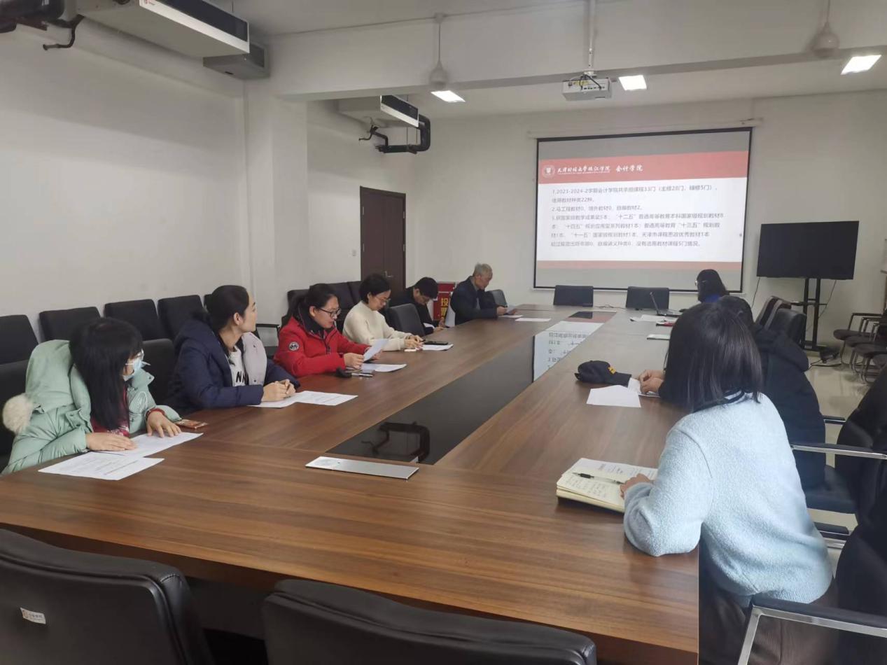 为提升教材选用的专业化、规范化水平,切实发挥教材在人才培养方面的重要作用,1月10日上午,会计学院在中和楼B409召开2023-2024-2学期教材审核会。会计学院教材管理工作组7名成员参加了会议,会议由办公室主任杨璐主持。