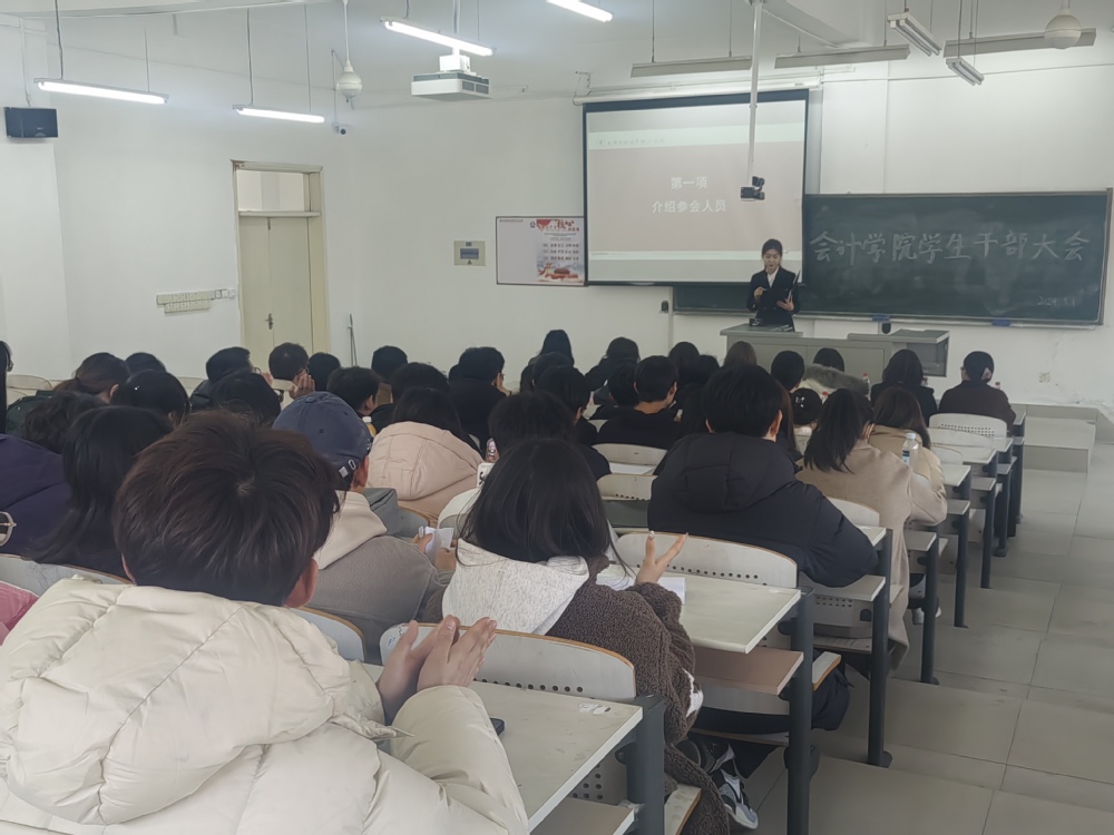 此次学生干部全体大会的顺利召开为学生工作明确了目标,理清了工作思路、激发了学生干部的积极性,增强了责任心与使命感。相信学生干部成员能以勇担责任、敢于奉献、勇于创新的态度对待接下来的工作,为会计学院的繁荣发展再添光彩。