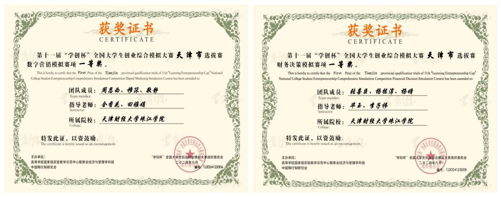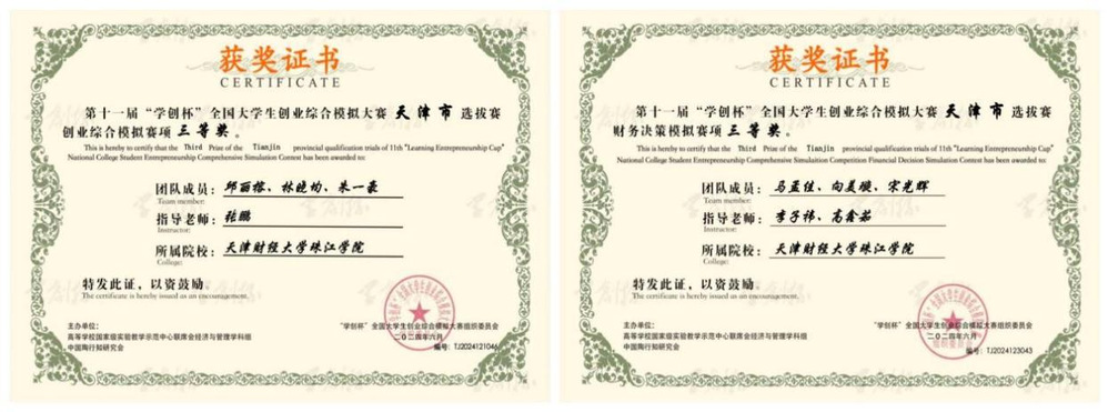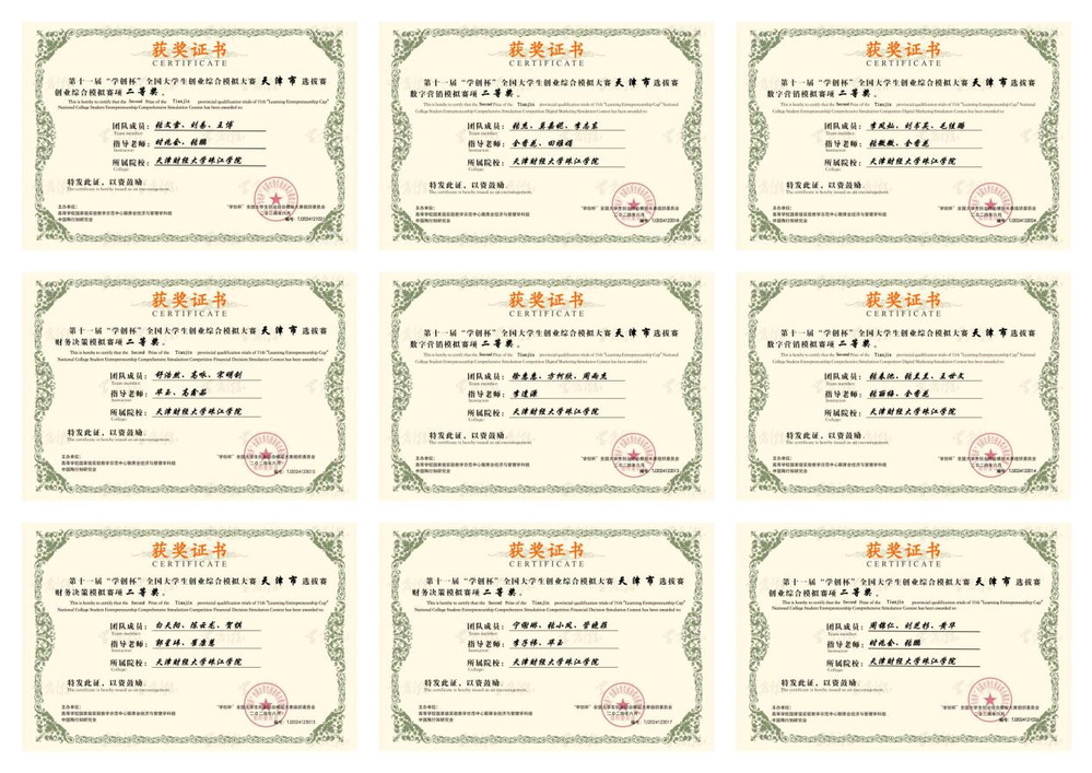 近日,第十一届“学创杯”全国大学生创业综合模拟大赛天津市选拔赛圆满落幕。学院13支参赛队伍在大赛中的数字营销模拟赛项、创业综合模拟赛项以及财务决策模拟赛项三条赛道中喜获佳绩,其中,2支队伍获市级一等奖、9支队伍获市级二等奖、2支队伍获市级三等奖。