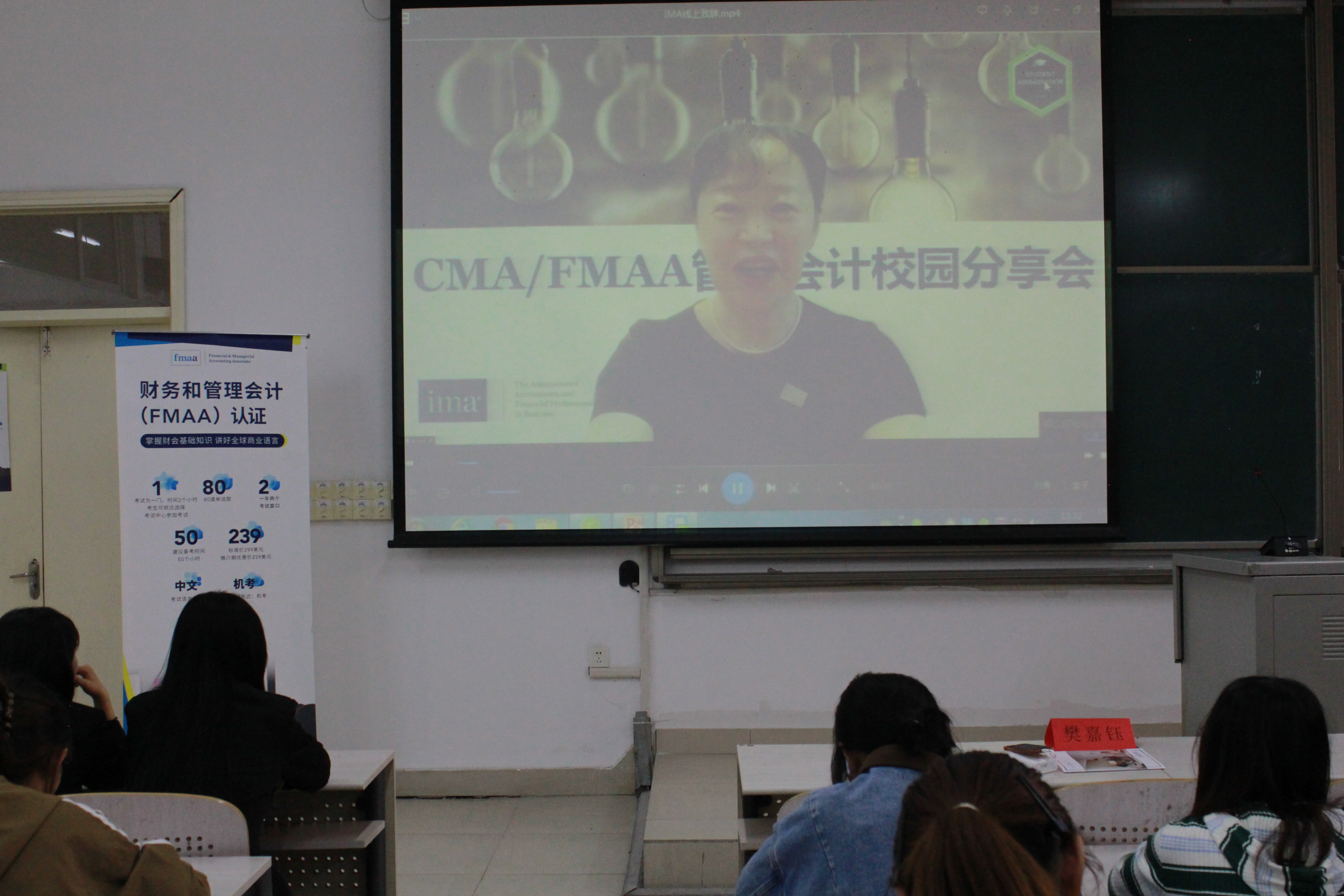 IMA北方区合作与发展总监周靓女士以视频的方式分享了IMA协会最新动态,鼓励同学们积极参加IMA管理会计案例校园大赛,介绍了CMA和FMAA两门管理会计的相关专业考试,展望了管理会计未来的发展机遇。