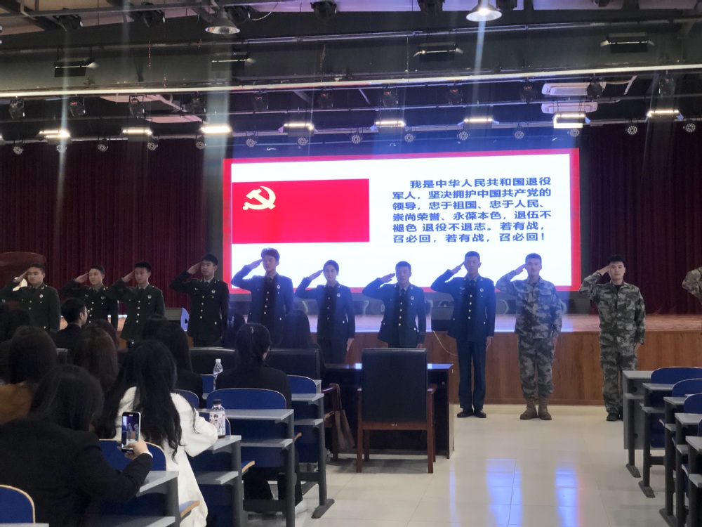 活动在庄严的国歌声中拉开序幕,首先介绍了抗美援朝的背景和现实意义,让同学们从中汲取精神力量,传承伟大的抗美援朝精神。活动第二项,完成退役大学生士兵退伍仪式,这不仅是对他们军旅生涯的完美总结,更是对他们未来新征程的美好祝福与热切期待。第三项,支部组织学院退伍大学生士兵组织党员、发展对象、入党申请人共同观看电影《特级英雄:黄维光》,更加直观地教育引导广大党员从荧幕中感悟精神,从故事中汲取力量。入党宣誓仪式促进新党员端正入党动机,坚定为共产主义奋斗终身的信念,让老党员再次感受到责任和使命,增强了党性意识和组织观念。