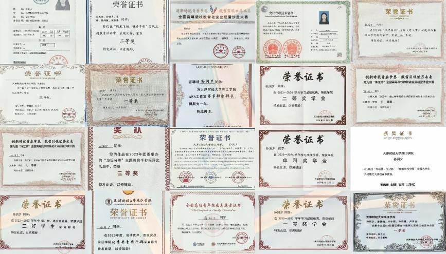 她初入大学校园时,就像一只刚刚破茧的蝴蝶,对周围的一切充满了懵懂与好奇,那时的她,虽有不知所措,却也怀揣着梦想,一步一个脚印的前进着。她积极参加各种竞赛,从校赛到天津市赛再到全国各地代表学校参加国赛,集腋成裘,聚沙成塔。连续两年获得学院奖学金,学分绩点与综合测评均位于专业前列。她坚信锲而不舍,金石可镂。