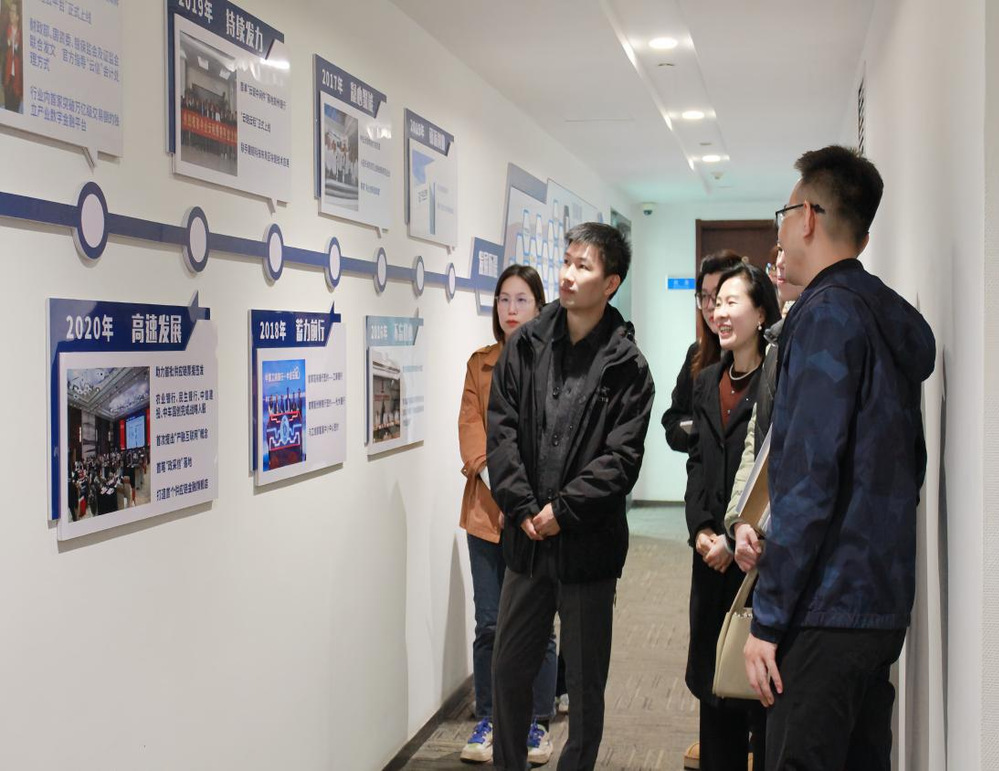 公司人力资源部负责人张立军、张英、葛琳颖热情接待。陪同学院师生参观各职能部门办公场所,并就公司发展历程、研发及科技成果展墙作了详细讲解。随后在交流会上张立军介绍了公司、保理运营、实习岗位、薪酬体系、晋升机制、福利待遇等情况,并表示公司致力于推进校企合作,期待我院输送优秀学子到公司实习和就业。