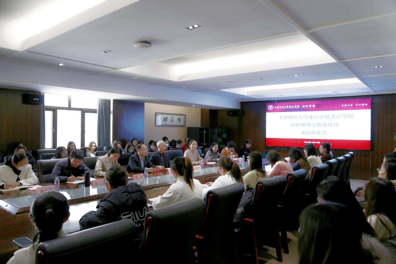 12月18日下午,会计学院在中和楼C414召开“铸就教学匠心、涵养师德师风”为主题的师德师风与教风建设交流座谈会。学院党委副书记、纪委书记白晓出席座谈会,会计学院院长韩传模,党总支书记毕玉,副院长徐立文,院长助理汪蕾及学院全体教职工参会。会议由会计学院院长助理汪蕾主持。