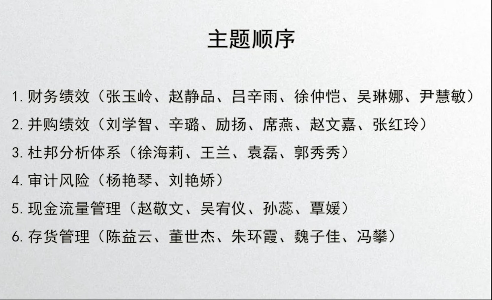 会议开始,汪蕾简要介绍了交流会的目的与意义。随后,六位负责论文主题的教师围绕“财务绩效”“并购绩效”“杜邦分析体系”“审计风险”“现金流量管理”“存货管理”六个主题展开分享。教师们结合《会计学院毕业论文写作参考手册》及以往指导经验,详细梳理了各主题的论文结构,并提供了典型论文样例,明确了写作规范。