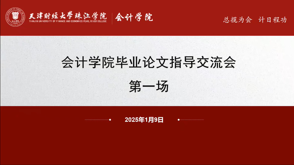 1月9日上午,会计学院举办了毕业论文指导交流会系列活动的首场会议。此次交流会旨在提升教师的毕业论文指导水平,进一步加强论文指导与管理质量。会计学院院长韩传模、副院长徐立文、院长助理汪蕾及全体教师参加了会议,会议由院长助理汪蕾主持。