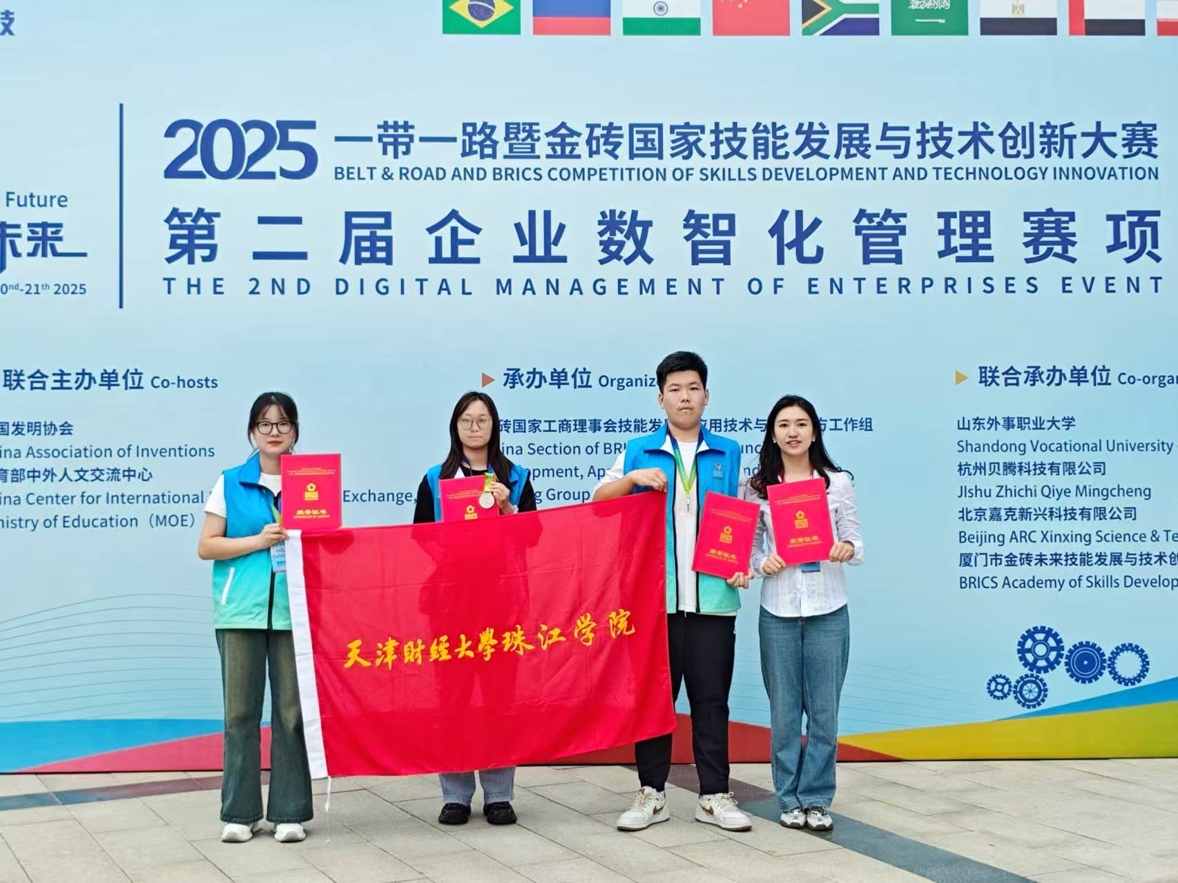 近日,2025一带一路暨金砖国家技能发展与技术创新大赛第二届企业数智化赛项全国总决赛圆满落幕,会计学院会计2314班贺棋、徐媛、任雪菲同学,荣获大赛二等奖,指导教师张琦获评“优秀指导教师奖”,BEAT365英国官网获评“优秀组织奖”。