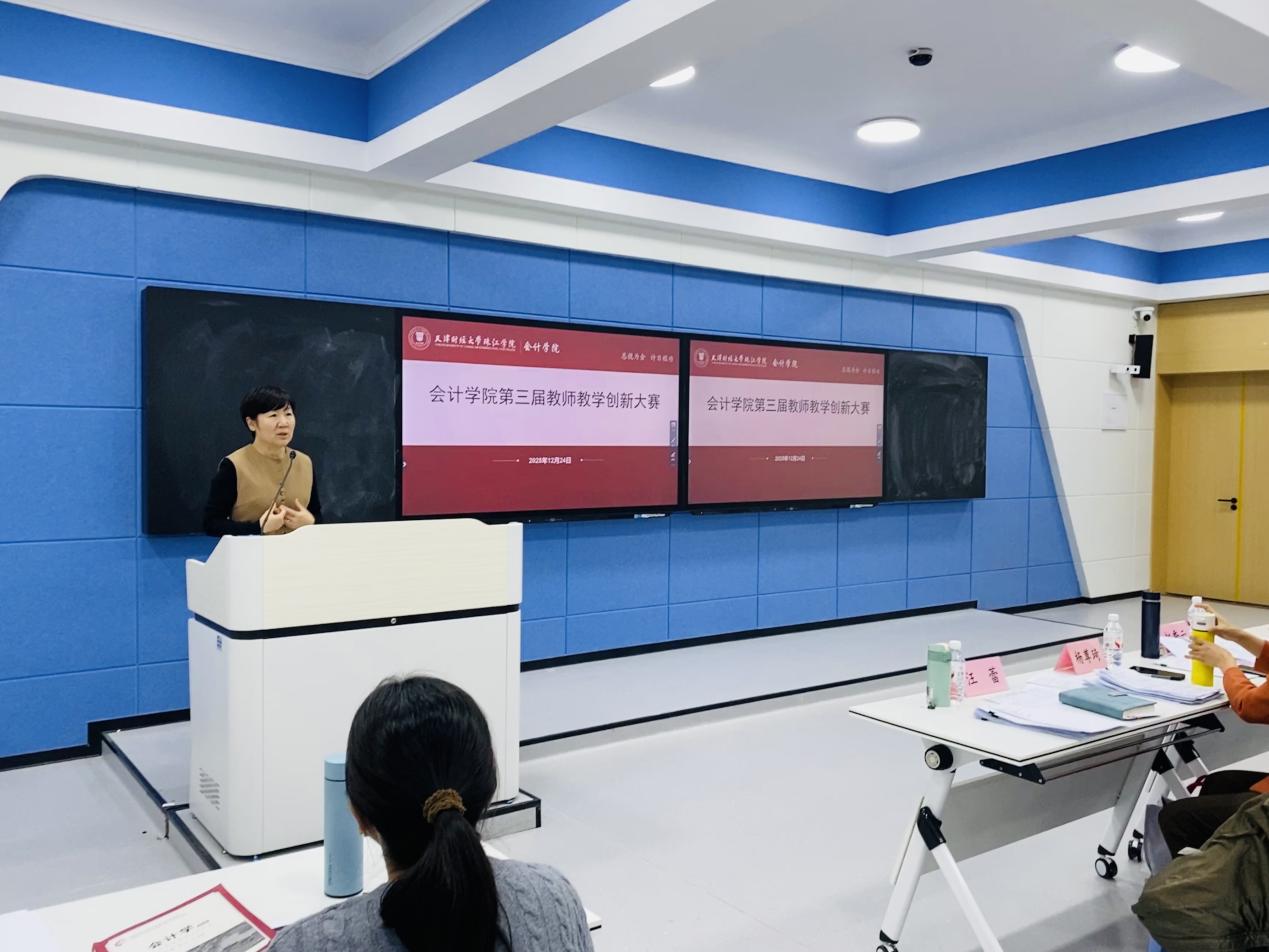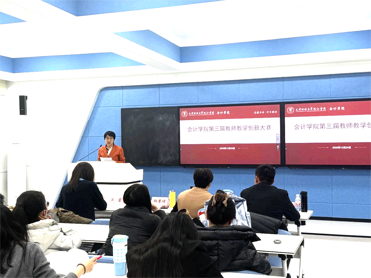 为持续深化教育教学改革,全面提升课堂教学质量与人才培养实效,12月24日下午,会计学院在日新楼208成功举办第三届教师教学创新大赛。本次大赛特邀教学督导专家赵秀云教授、杨尊琦教授,以及会计学院常务副院长徐立文、院长助理汪蕾、各系主任担任评委,全院教师现场观摩。比赛由办公室主任杨璐主持。