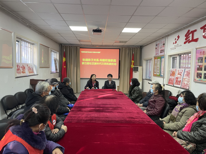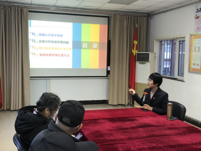 2021年12月17日上午,“和谐之家”志愿服务团队负责人、政治理论课部副部长、党支部书记、国家二级心理咨询师谢赛银教授受邀前往和平区蒙古路社区党群服务中心做题为“协调亲子关系构建和谐家庭”的心理健康专题讲座。蒙古路党群服务中心领导、工作人员和部分居民以及政治理论课部李荣、赵晓娇老师参加了本次讲座。