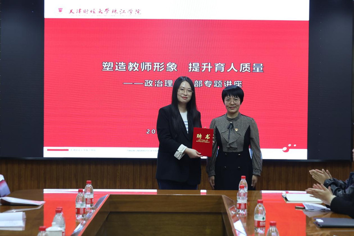 为深入学习贯彻习近平总书记“3·18”讲话精神及习近平总书记视察天津讲话精神,提升思政课教师的育人水平,4月10日下午,政治理论课部邀请周恩来邓颖超纪念馆宣教部叶平老师来院开展专题宣讲,宣讲以“塑造教师形象,提升育人质量”为题,党委书记靳术海、政治理论课部学科带头人刘秀华教授及部门全体教师参会。讲座由综合素质培养教研室主任郑曼主持。