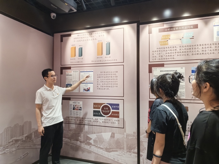 在政治理论课部部长刘秀华教授的带领下,实践团队成员先后参观了“惊天大案”“警钟长鸣”和“任重道远”等展览板块和复原的刘青山、张子善办公室,详细了解了二人腐化堕落成历史罪人的演变过程,用切身感受领会了这堂生动的反腐倡廉警示教育课。在实践学习过程中,部门教师杨哲现场授课,从廉洁是什么、为什么要进行廉洁教育、大学生应该如何做好廉洁自律三个层面进行了深入解读和互动教学。让同学们深刻感受到了中国共产党勇于自我革命、将反腐败进行到底的决心。