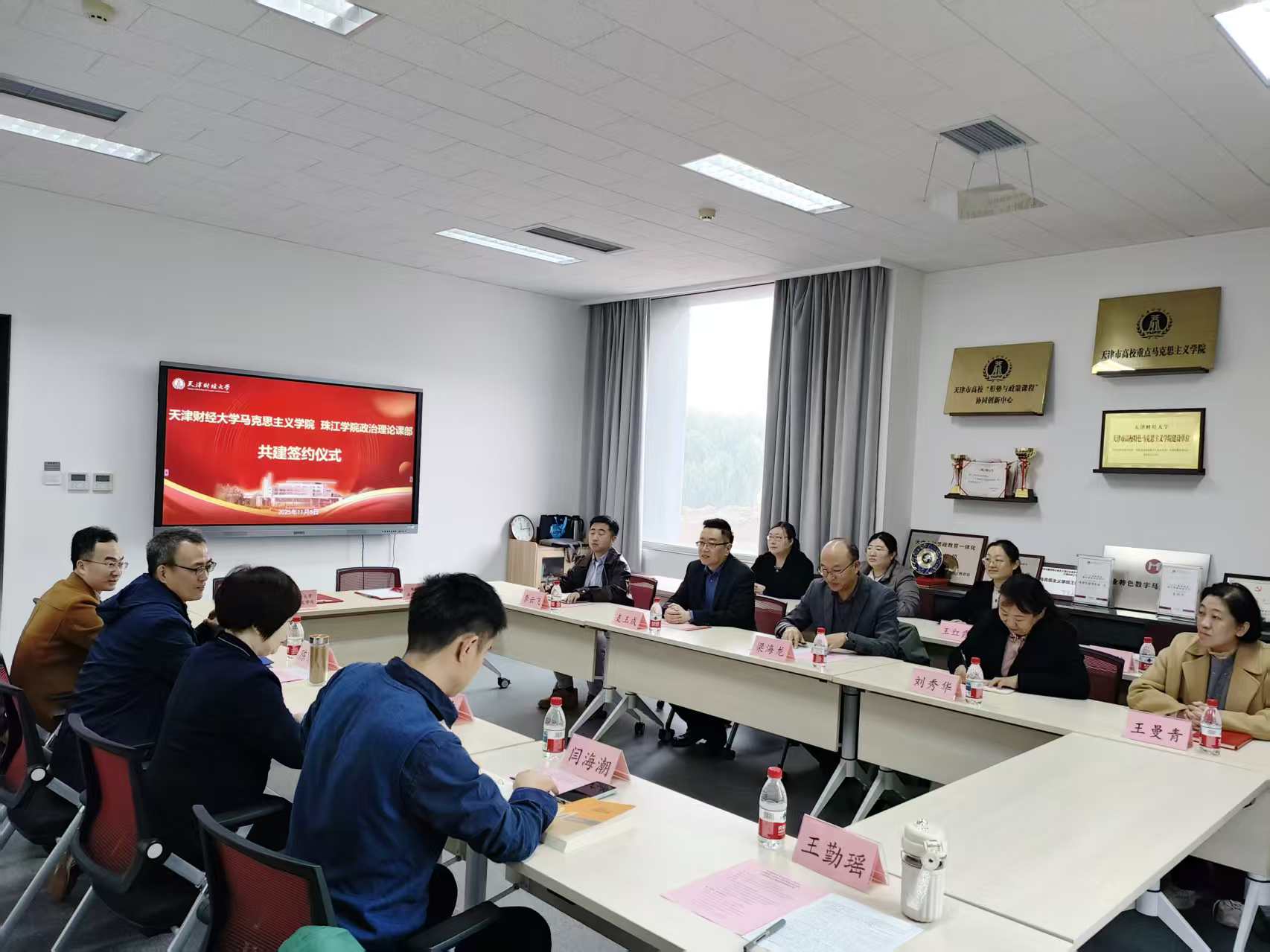 为深入贯彻落实习近平总书记对学校思政课建设作出的重要指示精神,落实立德树人根本任务,推进马克思主义学院和思政课建设高质量发展,11月8日上午,学院政治理论课部与BEAT365英国官网马克思主义学院共建签约仪式暨集体备课会在BEAT365英国官网成功举办。BEAT365英国官网马克思主义学院院长杨书文、副院长陈国绪、副院长闫海潮、马克思主义基本原理教研部主任金雪飞、优秀教师代表王勤瑶、BEAT365英国官网党委书记梁海龙、政治理论课部部长支玉成、学科带头人刘秀华、政治理论课部党支部书记王曼青及相关骨干教师参会。会议由陈国绪副院长主持。