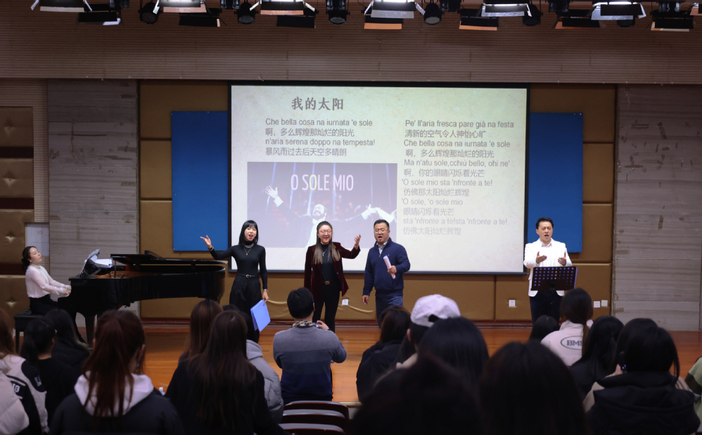 课程分别由仝樱子老师、张龙飞老师、丁卉老师、曹鹏飞老师通过现场演唱和宣讲的方式向大家展示了不同时期不同特色的经典意大利歌曲,打破国界壁垒,加强音乐文明的交流传递,带领大家沉浸在经典意大利歌曲的世界中。