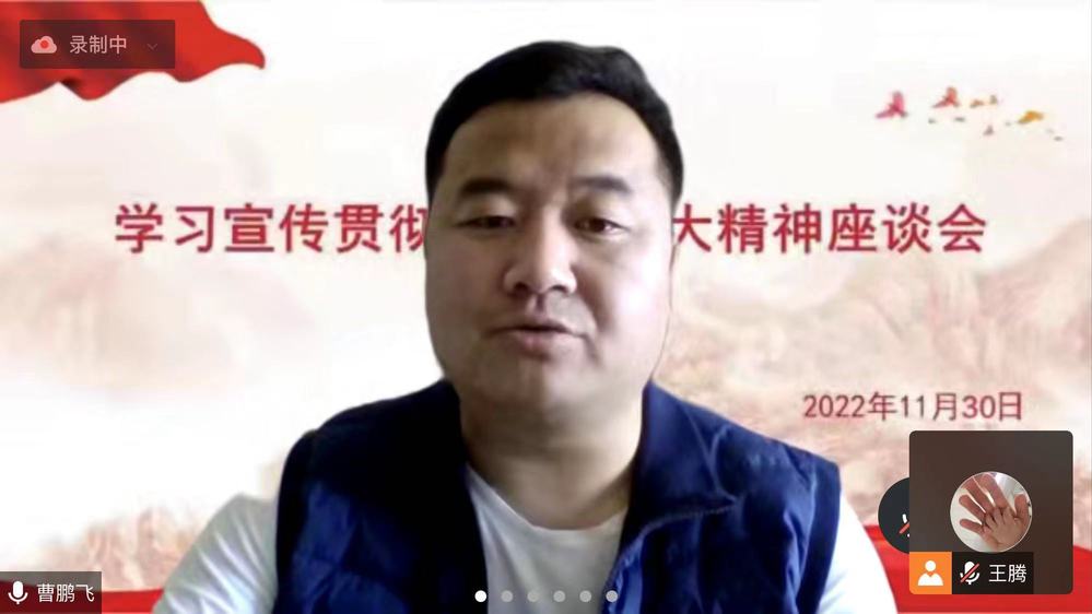 2022年11月30日中午,通过线上会议平台,艺术学院院长滑寒冰教授主持召开贯彻学习二十大报告座谈会,艺术学院党支部书记王振杰和全体教师参加此次会议。
