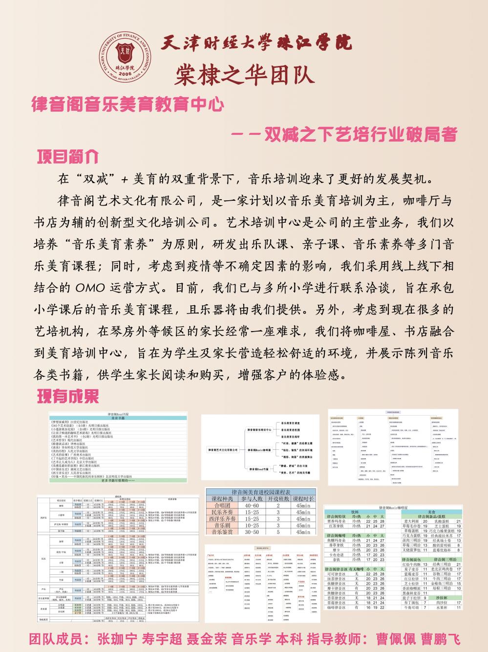 近日,第八届中国国际“互联网+”大学生创新创业大赛天津赛区结果公布,艺术学院曹佩佩老师与曹鹏飞老师指导的作品《律音阁音乐美育教育中心——“双减”之下艺培行业破局者》获高校赛道银奖,苏飞飞老师参与指导的两项作品获铜奖。